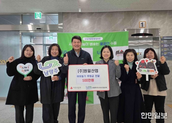 이진춘 수동면장은 “다년간 변함없이 이웃사랑과 나눔을 실천해 온 원일산업에 깊은 감사를 전한다”며 “지역사회와 긴밀히 소통하며 복지 사각지대 해소와 주민 삶의 질 향상에 더욱 힘쓰겠다”고 강조했다.