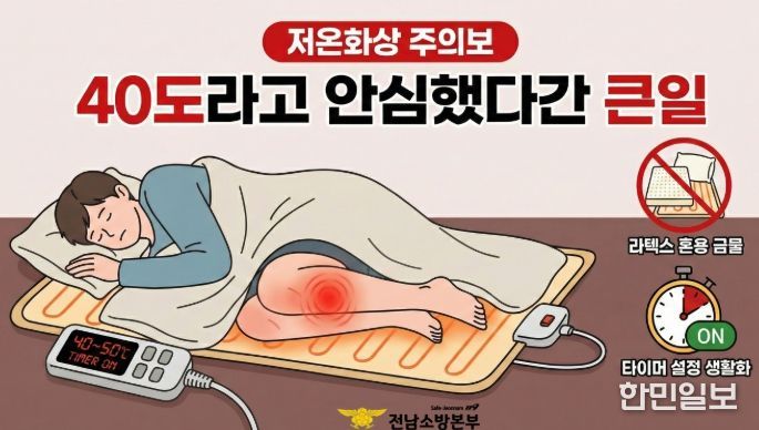 이에 전남소방본부는 안전한 겨울밤을 위한 3대 수칙으로 ▲피부 직접 접촉 피하기(얇은 이불·패드 사용) ▲취침 시 타이머 설정 생활화 ▲라텍스 침구 혼용 금지 등을 제시했다.