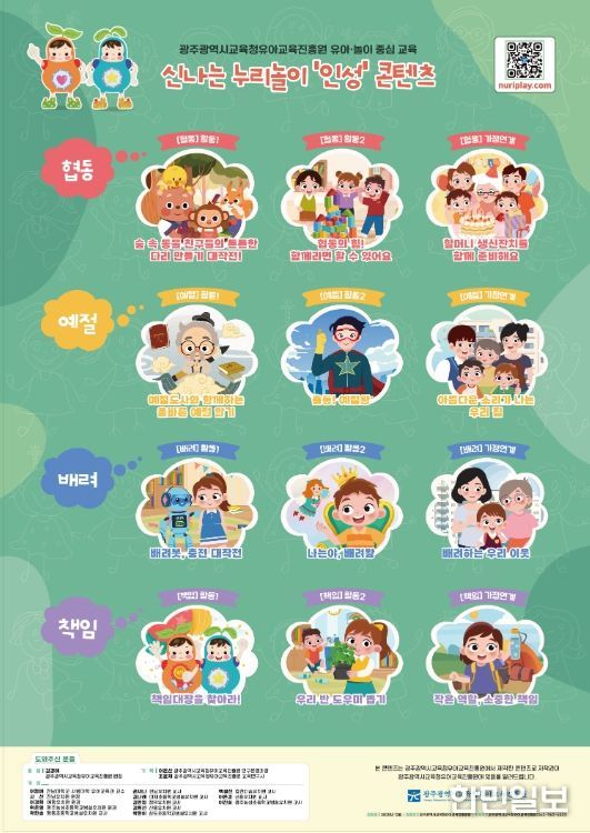 한민일보 서울포커스 임경복 기자 | 광주시교육청유아교육진흥원이 오는 30일 유치원·어린이집의 교육활동을 지원하기 위해 자체 개발한 ‘2025년 유아·놀이중심 교육 콘텐츠’를 배포했다.