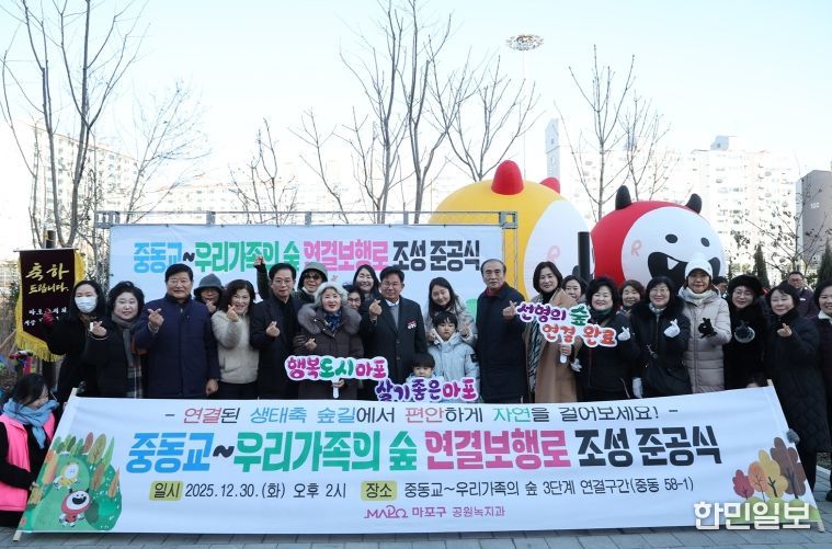 한민일보 서울포커스 박정민 기자 | 박강수 마포구청장은 12월 30일 오후 2시, 중동교와 우리가족의 숲(구 선형의 숲) 3단계를 잇는 구간에서 열린 ‘중동교~우리가족의 숲 연결보행로 조성사업 준공식’에 참석했다.