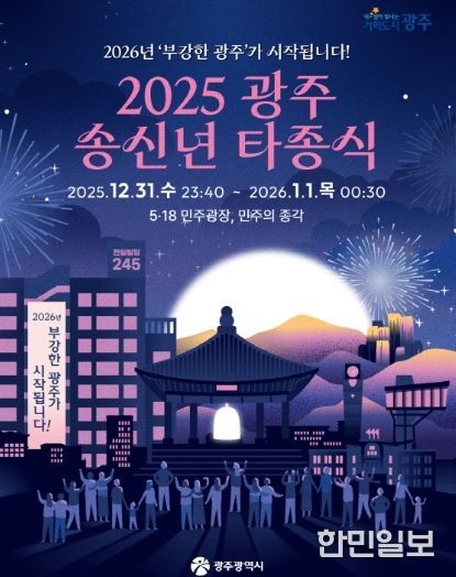 행사에는 강기정 시장을 비롯한 2025년 한 해 광주를 빛낸 시민대표 18명으로 구성된 타종 인사와 시민 등 3000여명이 참석할 예정이다.