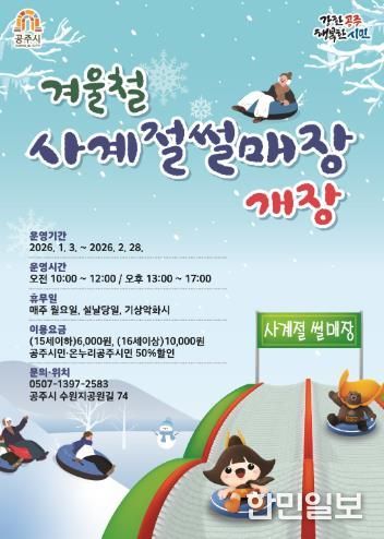 한민일보 서울포커스 임경복 기자 | 공주시는 2026년 겨울철 사계절썰매장을 오는 1월 3일부터 2월 28일까지 운영한다고 밝혔다.