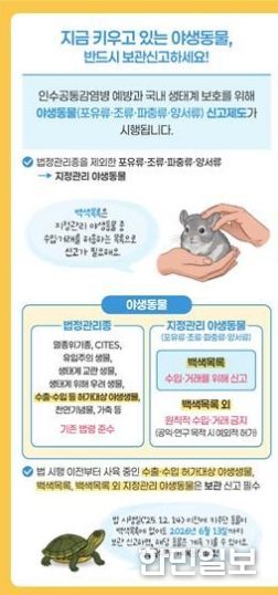 포항시 관계자는 “이번 제도는 생태계를 보호하고 시민 건강을 지키기 위한 최소한의 안전장치”라며, “계도기간이 운영되지만 사육 신고 마감일은 내년 6월로 더 빠른 만큼, 희귀동물을 키우는 시민들은 기간 내에 꼭 신고 절차를 밟아주시길 당부드린다”고 말했다.
