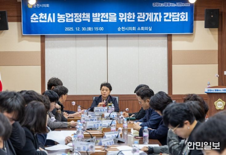 한민일보 서울포커스 임광현 기자 | 순천시의회는 지난 12월 30일 순천시의회 소회의실에서 '순천시 농업정책발전을 위한 관계자 간담회'를 개최하고, 관계 부서 및 청년 농업인 등과 함께 실질적인 농업지원 방안을 모색했다.