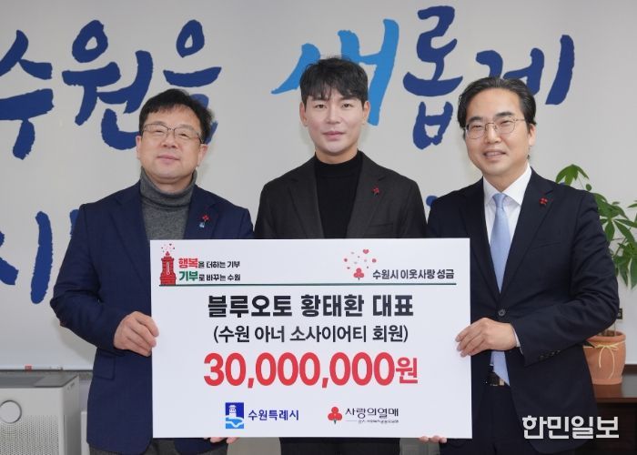 한민일보 서울포커스 진광성 기자 | 황태환 블루오토 대표가 12월 31일 “취약계층 아동 지원에 사용해달라”며 3000만 원을 수원시에 기부했다.