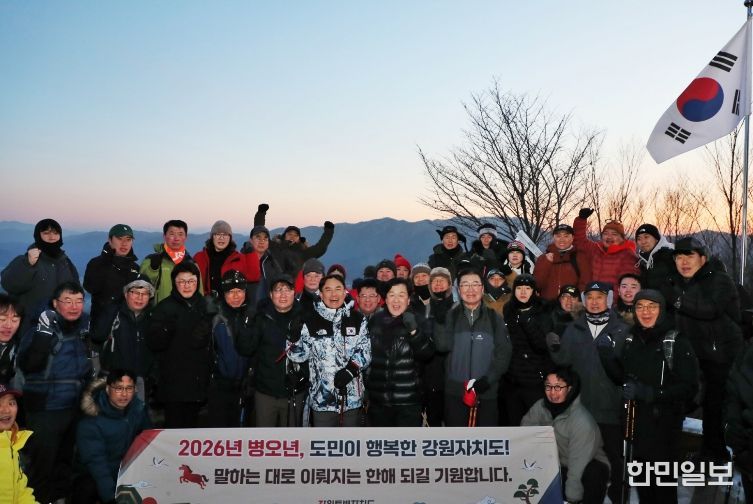한민일보 서울포커스 곽중희 기자 | 김진태 강원특별자치도지사는 2026년 1월 1일 새해 첫 일정으로 도청 실국장 및 직원 30여 명과 함께 금병산에서 해맞이 산행을 진행했다.