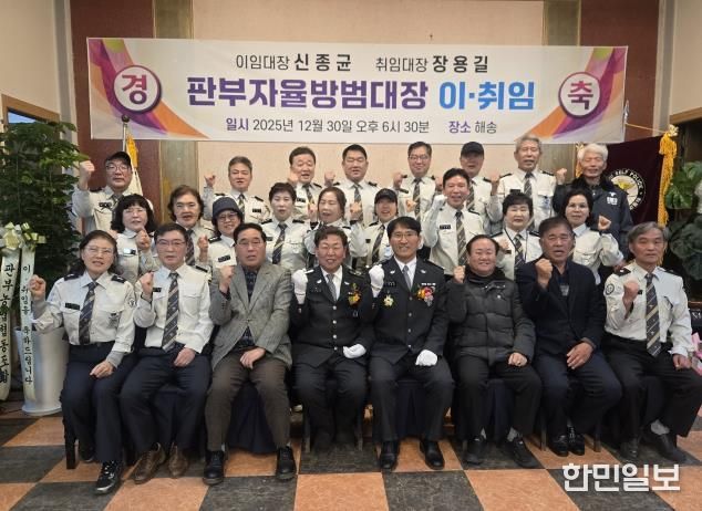 한민일보 서울포커스 임경복 기자 | 원주시 판부면자율방범대는 지난달 31일 자율방범대원과 관계자 등 80여 명이 참석한 가운데, 제8대 장용길 신임 대장과 제7대 신종균 전 대장의 이·취임식을 개최했다.