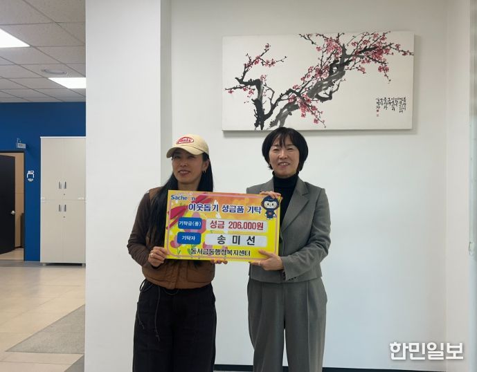한민일보 서울포커스 김은금 기자 | 써니잡화점(대표 송미선)은 지난 1월 2일 동서금동 행정복지센터를 방문해 관내 독거노인 및 취약계층을 위한 이웃돕기 성금 20만 6천 원을 기탁했다.