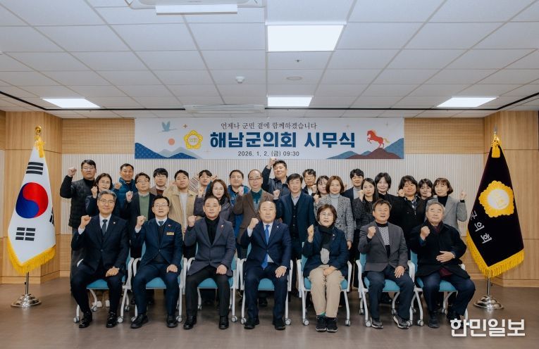 한민일보 서울포커스 박용남 기자 | 해남군의회는 2일 주민소통실에서 군의원들과 의회사무과 직원들이 참석한 가운데 2026년 병오년(丙午年) 시무식을 열고 본격적인 의정활동을 시작했다.