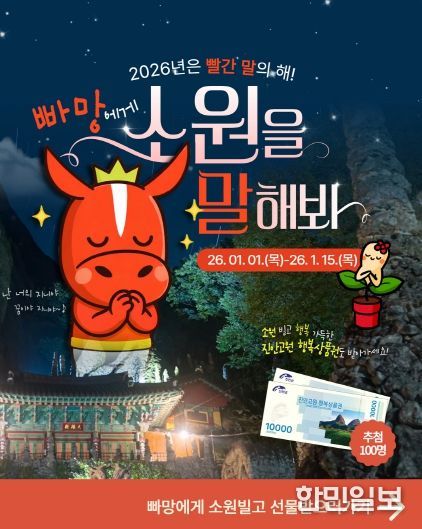 한민일보 서울포커스 박용남 기자 | 진안군이 2026년 병오년(丙午年) ‘빨간 말의 해’를 맞아 군 대표 캐릭터인‘빠망’을 내세워 특별한 새해 이벤트를 진행한다.