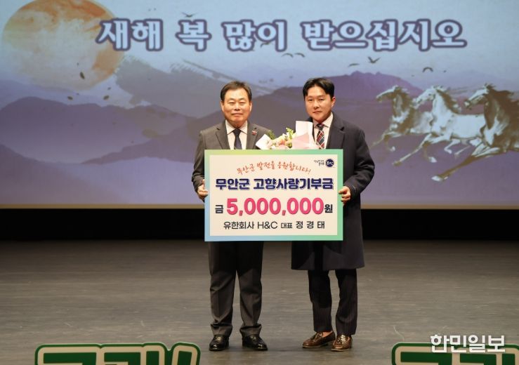 한민일보 서울포커스 박용남 기자 | 무안군은 지난 5일 향우 기업인 유한회사 H·C 정경태 대표가 2026년 무안군 고향사랑기부제 제1호 기부자로 나서 500만 원을 기탁했다고 밝혔다.