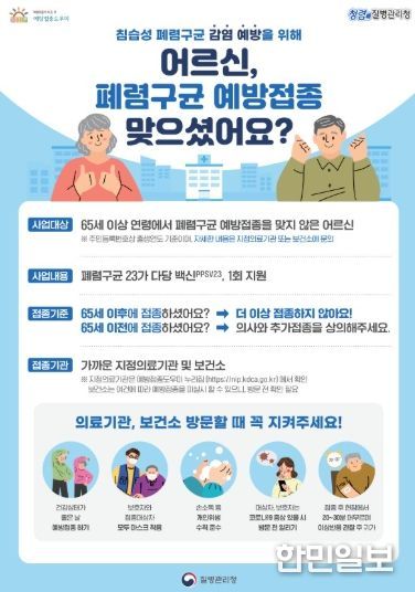 이번 접종 대상은 1961년 12월 31일 이전 출생자 중 폐렴구균 23가 다당 백신(PPSV23)을 한 번도 접종하지 않은 어르신이며, 접종 비용은 전액 무료다.