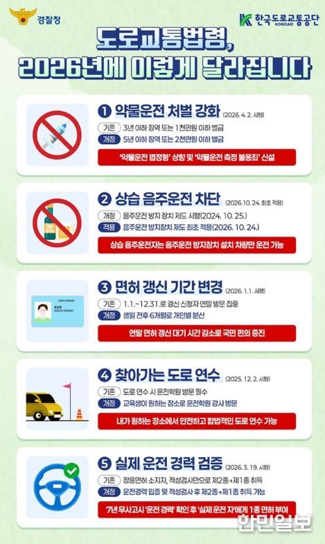 한민일보 서울포커스 임경복 기자 | ① 약물운전 처벌 강화(2026.4.2. 시행)