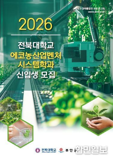 한민일보 서울포커스 김용택 기자 | 부안군은 미래농산업을 이끌어 갈 전문인력을 양성하기 위해 2026학년도 전북대학교 에코농산업벤처시스템학과 신입생을 모집한다고 밝혔다.