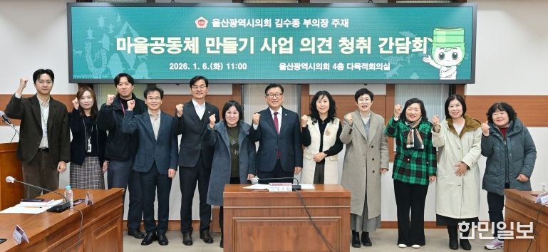 한민일보 서울포커스 임경복 기자 | 울산광역시의회 김수종 부의장(방어·화정·대송동)은 6일 오전, 시의회 4층 다목적회의실에서 마을공동체 만들기 사업과 관련한 의견 청취 간담회를 개최했다.