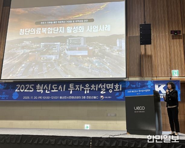 재단은 지난해 11월 울산전시컨벤션센터에서 열린 ‘2025 혁신도시 투자유치설명회’에서 혁신도시 투자유치 및 기업지원 우수사례 기관으로 선정됐으며 박은희 부장이 ‘첨단의료복합단지 활성화 사업사례’를 주제로 발표했다.