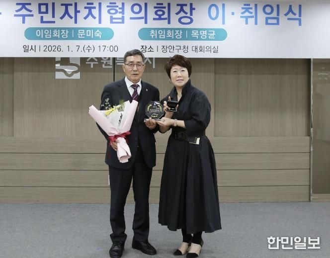이번 이·취임식에는 각 동 주민자치회장과 위원, 장안구 단체장 등 100여 명이 참석한 가운데, 지난 1년간 장안구 주민자치 활성화를 위해 헌신한 문미숙 협의회장에 대한 감사를 표하고 새로 취임하는 목명균 협의회장에게 축하를 전하는 자리를 가졌다.