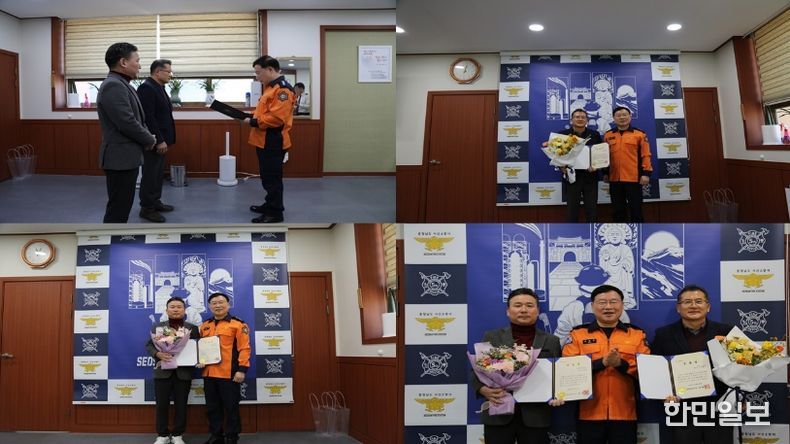한민일보 서울포커스 최성훈 기자 | 서산소방서(서장 최장일)는 8일 오전 11시 화재대응조사 분야에서 민간의 적극적인 참여와 협력을 통해 시민 안전 확보에 기여한 민간인 유공자 2명에게 도지사표창을 수여했다고 밝혔다.