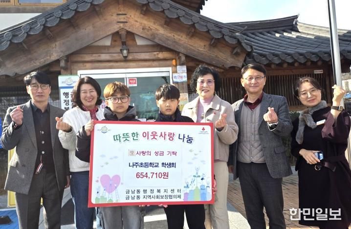 나주초등학교 학생회와 학부모회는 지난 5일 ‘나주초등학교 나눔장터’를 통해 마련한 수익금 65만 4710원을 어려운 이웃에게 전해달라며 금남동에 기탁했다.
