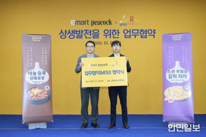 이번 협약을 통해 남해군과 이마트는 1년간 다양한 협력 사업을 전개할 예정이다. 양측은 남해산 마늘을 주재료로 한 △피코크 마늘 듬뿍 닭볶음탕 △피코크 스윗 무화과 갈릭 피자 △피코크 마늘 족발 △피코크 남해마늘 저당소스 기름떡볶이 등 총 7종의 프리미엄 가정간편식 신제품을 개발한다.