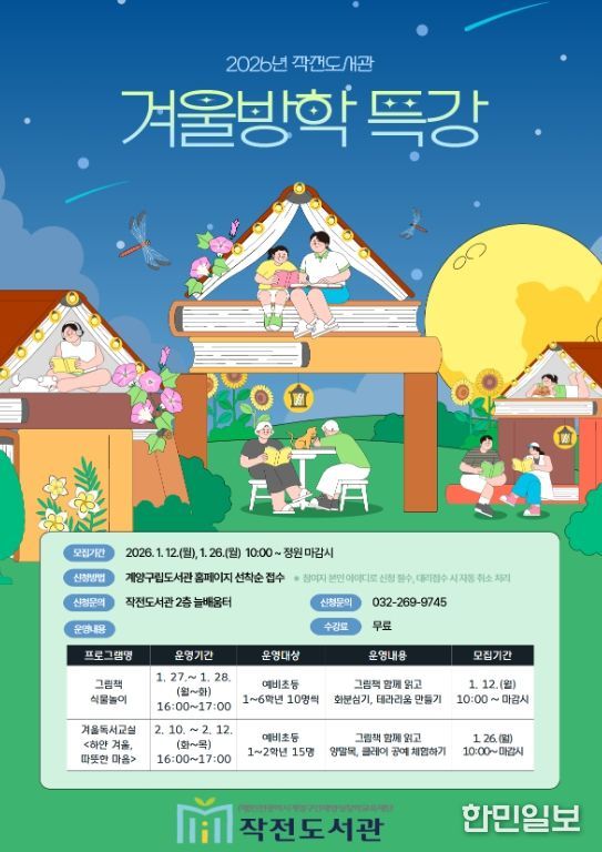 한민일보 서울포커스 김성혜 기자 | 재단법인 인천광역시계양구인재양성장학교육재단 작전도서관에서는 2026년 겨울방학을 맞아 어린이를 위한 다양한 방학 특강 프로그램을 운영한다.