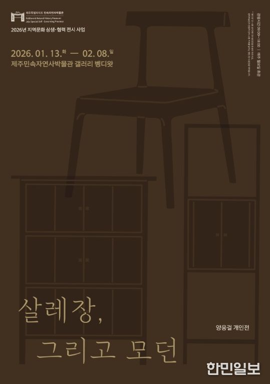 한민일보 서울포커스 임경복 기자 | 제주민속자연사박물관은 ‘지역문화 상생·협력 전시 사업’의 일환으로 1월 13일부터 2월 8일까지 갤러리 벵디왓에서 양웅걸 개인전 '살레장, 그리고 모던'을 개최한다.
