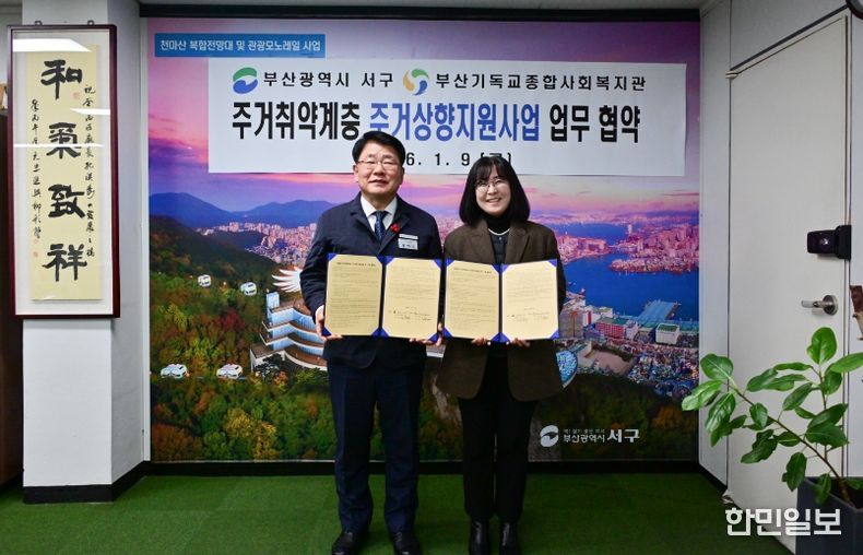 한민일보 서울포커스 임광현 기자 | 부산 서구와 부산기독교종합사회복지관(관장 김정자)은 지난 9일 2026년 주거 취약계층 주거상향지원사업 업무협약을 체결했다.