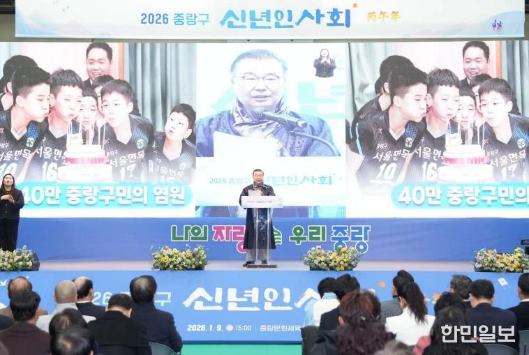 한민일보 서울포커스 임광현 기자 | 중랑구가 지난 9일 오후 중랑문화체육관에서 구민 1,200여 명이 참석한 가운데 2026년 신년인사회를 개최했다.