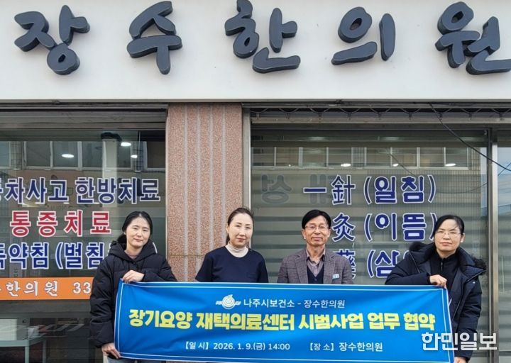 한민일보 서울포커스 임광현 기자 | 전라남도 나주시는 지난 9일 남평읍에 있는 장수한의원(원장 박소영)과 ‘장기요양 재택의료센터 시범사업’ 추진을 위한 업무협약을 체결했다고 밝혔다.