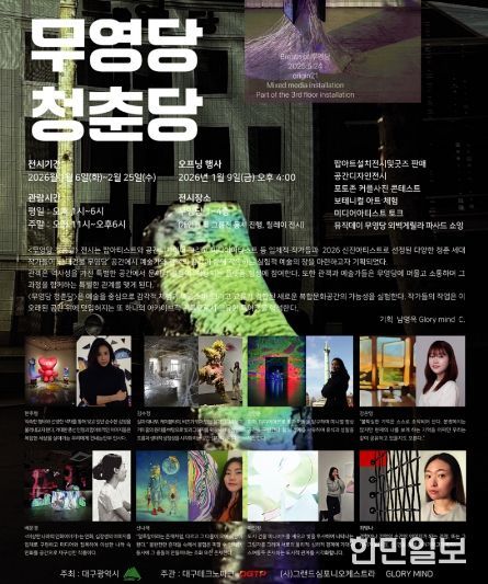 이번 ‘무영당 청춘당’ 전시는 대구시와 지역 문화예술가와의 협업을 통해 2026년 신진 아티스트로 선정된 청춘 세대 작가들이 무영당이라는 공간을 매개로 만나 교류하는 실험적 예술의 장으로 기획됐다.