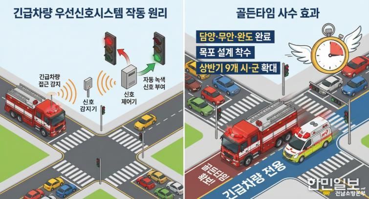 한민일보 서울포커스 최성훈 기자 | 전남소방본부는 화재·구급 등 위급 상황 발생 시 소방차와 구급차의 신속한 현장 도착을 돕기 위해 ‘긴급차량 우선신호시스템’을 확대 운영한다고 밝혔다.