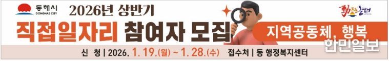 한민일보 서울포커스 임경복 기자 | 동해시는 취업 취약계층의 생계 안정을 돕고 지역경제에 활력을 불어넣기 위해 오는 19일부터 2026년 상반기 직접일자리사업 참여자 모집을 시작한다.