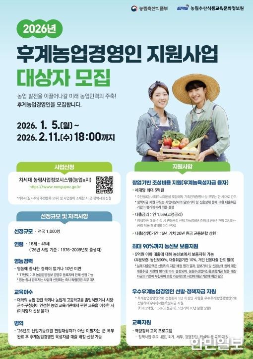 사업 신청은 처세대농림사업정보시스템(농업e지)을 통해 온라인으로 가능하며, 서류 평가와 평가 검증을 거쳐 2026년 4월 중 최종 결과가 발표될 예정이다.