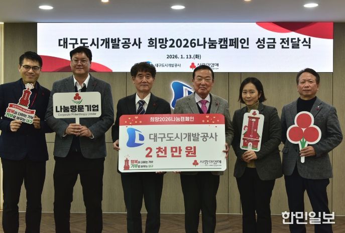 한민일보 서울포커스 김봉순 기자 | 대구도시개발공사는 1월 13일 사회복지공동모금회가 주관하는 ‘희망2026나눔캠페인’에 성금 2,000만 원을 기탁했다고 밝혔다.