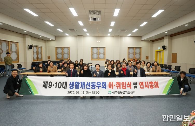 한민일보 서울포커스 임경복 기자 | 성주군생활개선동우회는 2026년 1월 13일 성주군농업기술센터 대강당에서 회원 및 내빈 40여명이 참석한 가운데 제9·10대 회장단 이·취임식 및 연시총회를 개최했다.