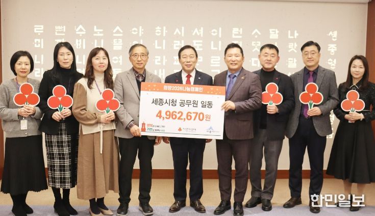 한민일보 서울포커스 김윤이 기자 | 세종사회복지공동모금회에 따르면 14일 14시30분 세종시청 5층 세종실에서 최민호 세종시장, 박상혁 세종모금회장, 김윤회 세종모금회 부회장 등이 참석한 가운데 ‘희망2026나눔캠페인 희망성금 전달식’을 가졌다.