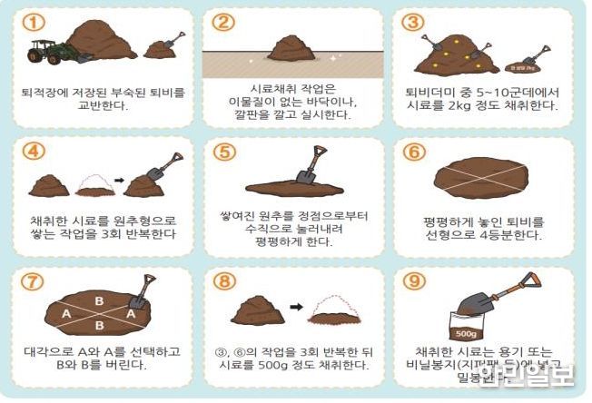 부숙도 검사를 원하는 농가는 퇴비 시료 500g을 채취해 농업기술센터 내 종합분석실로 방문해 신청하면 된다.