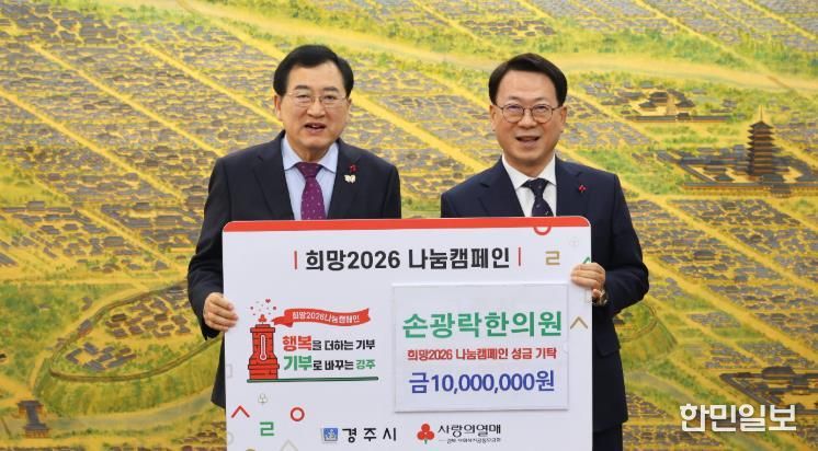 한민일보 서울포커스 김봉순 기자 | 경주시는 14일 시청에서 손광락한의원으로부터 ‘희망2026 나눔캠페인’ 성금 1,000만 원을 기탁받았다고 밝혔다.