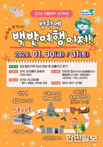 한민일보 서울포커스 김용택 기자 | 익산시가 겨울방학을 맞아 지역의 역사와 문화를 함께 즐길 수 있는 시티투어를 운영한다.