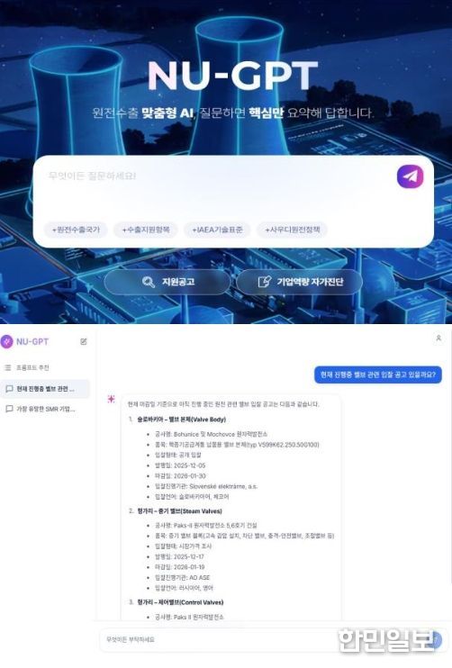 ‘NU-GPT’는 2022년부터 축적한 해외입찰·요건 정보, 발주계획, 세계시장 뉴스와 국제원자력기구(IAEA)·경제협력개발기구(OECD)·세계 원자력협회(WNA) 출간 보고서 등 1만여 건을 학습하여 개발됐다. 기업들은 NU-GPT에 질문만 하면 수많은 자료를 확보·분석하지 않고도 심도있는 시장정보와 인사이트를 얻게 돼 수출 전문인력을 채용한 효과를 누릴 것으로 기대된다.