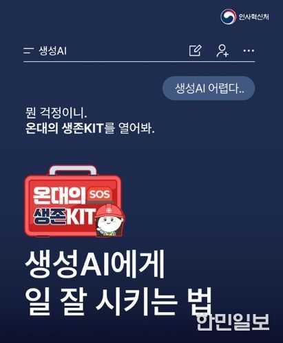 예를 들어 "신입 교육 프로그램 만들어줘"보다는 "인사혁신처 교육 담당자 입장에서 신규 공무원 대상 교육과정을 3일 일정으로 설계해줘"라고 요청해 보세요. 역할을 구체적으로 설정할수록 생성 AI의 답변은 더 정책적이고 실무에 맞게 달라집니다.