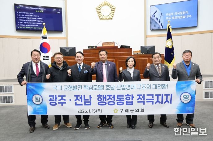 한민일보 서울포커스 임경복 기자 | 구례군의회는 지난 1월 15일, 제326회 임시회 제1차 본회의에서 「광주·전남 행정통합 지지 성명서」를 채택했다고 밝혔다.