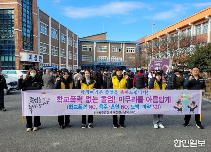 행사는 졸업식 당일 학교 정문과 진입로 등 청소년 밀집지역을 중심으로 진행되며, 청소년 폭력 및 비행 예방 캠페인과 함께 완주경찰서와 합동 순찰을 병행해 현장 중심의 예방 활동을 강화했다.