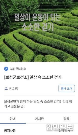 한민일보 서울포커스 박용남 기자 | 보성군은 2026년 한 해 동안 군민 누구나 참여할 수 있는 모바일 앱 활용 비대면 건강 증진 프로그램인 ‘소소한 걷기 챌린지’를 연중 운영한다고 밝혔다.