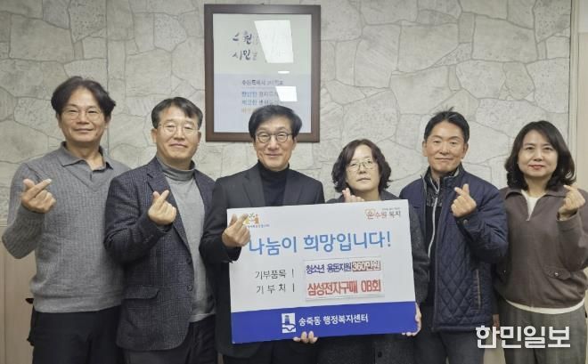 한민일보 서울포커스 진광성 기자 | 수원시 장안구 송죽동은 지난 15일 삼성전자 구매OB회와 함께하는 ‘청소년 용돈지원사업’ 후원금 전달식을 개최했다고 밝혔다.