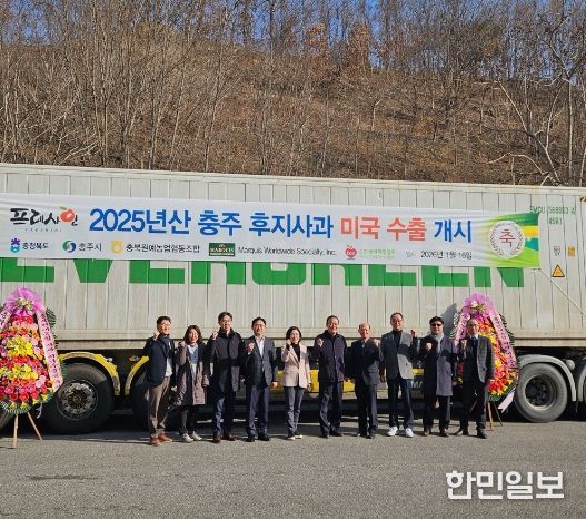 한민일보 서울포커스 김다남 기자 | 충주시는 충북원예농협 충주거점산지유통센터를 통해 충주사과를 미국으로 수출하는 선적식을 16일 개최했다.