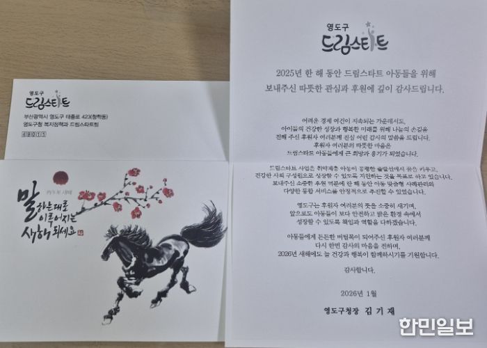 한민일보 서울포커스 임광현 기자 | 영도구 드림스타트는 지난 1월 16일 드림스타트 아동을 위해 후원과 협력을 이어온 후원업체 및 협약기관 37곳에 감사 서한을 발송했다.