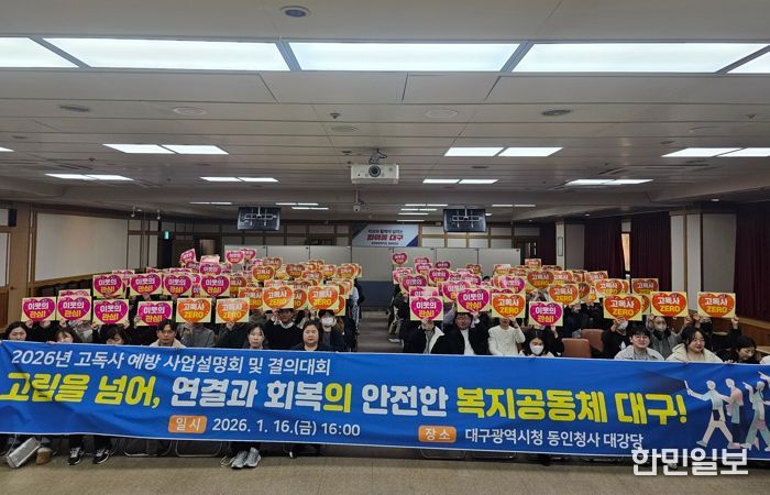한민일보 서울포커스 임경복 기자 | 대구광역시는 1월 16일, 시청 동인청사에서 9개 구·군 및 읍·면·동 고독사 예방사업 담당 공무원 160여 명이 참석한 가운데 ‘2026년 고독사 예방 사업설명회 및 결의대회’를 개최했다.