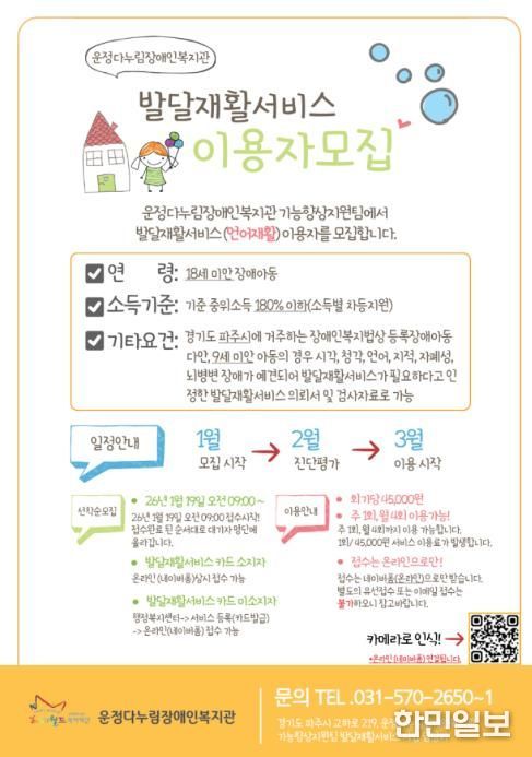 한민일보 서울포커스 진광성 기자 | 파주시는 운정다누림장애인복지관을 통해 발달지연 및 장애로 언어재활치료가 필요한 아동을 위한 ‘발달재활서비스(언어재활)’를 지원한다고 밝혔다.