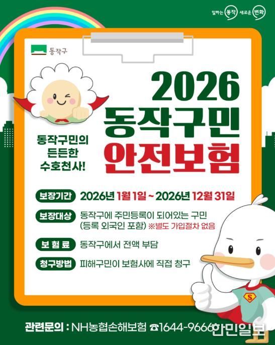 한민일보 서울포커스 곽중희 기자 | 동작구는 2026년부터 ‘구민안전보험’을 확대 운영한다고 19일 밝혔다.